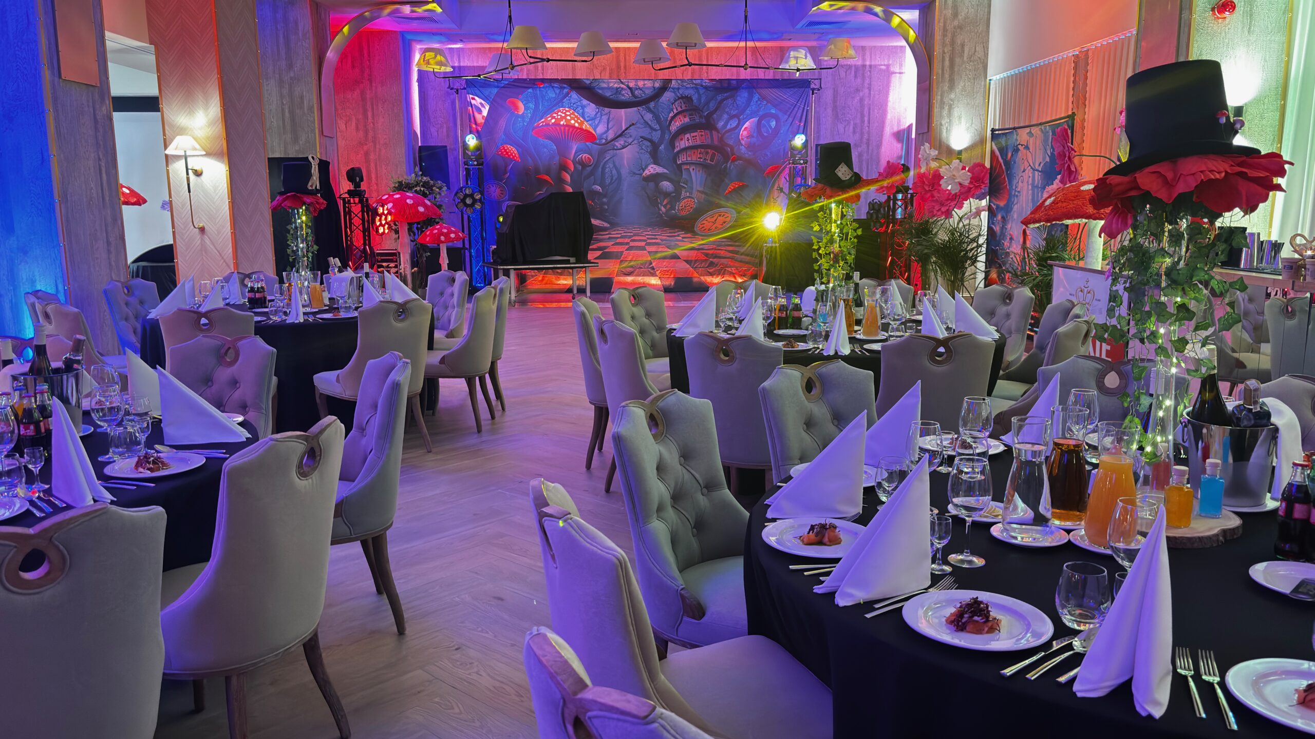 Witaj w świecie pełnym magii i fantazji, gdzie czas płynie inaczej, a rzeczywistość miesza się z bajkowymi przygodami. Nasza agencja eventowa zaprasza na niezapomnianą imprezę firmową inspirowaną kultową opowieścią „Alicja w Krainie Czarów”. Przygotuj się na wieczór pełen niespodzianek, gdzie każdy uczestnik może zanurzyć się w magiczny świat Alicji, spotkać Białego Królika, Szalonego Kapelusznika czy Królową Kier. To wydarzenie przeniesie Twoją firmę do krainy czarów, pełnej niesamowitych atrakcji i dekoracji, które oczarują nawet najbardziej wymagających gości.